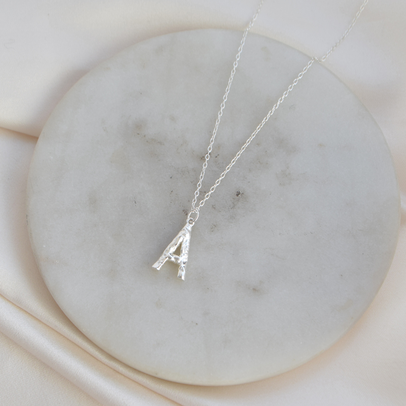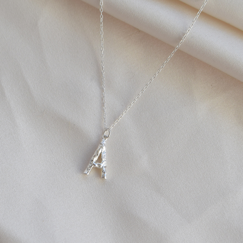 Vakkert og annerledes personlig brevkjede i "organisk" design med enkelt fint ankerkjede.