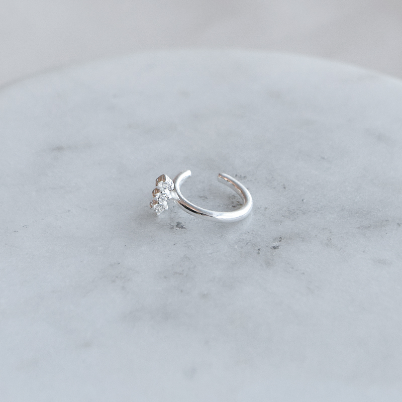 Flake earcuff er et elegant øresmykke i sterling sølv, dekorert med små, klare zirkonia samlet i et lett, snøfnugg-lignende uttrykk. Det delikate designet gir et feminint glimt og tilfører looket ditt noe lett og eksklusivt – uten å virke prangende.
