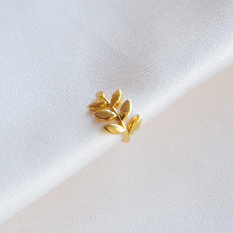 Bloom earcuff i 18k gullbelagt sterling sølv er inspirert av naturens myke former. Det fine bladdesignet gir et feminint og organisk uttrykk, mens den varme gullbelagte overflaten tilfører et eksklusivt preg.