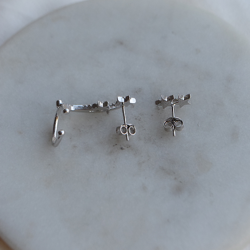 "Celeste" asymmetriske ørestikker og earcuff i sølv