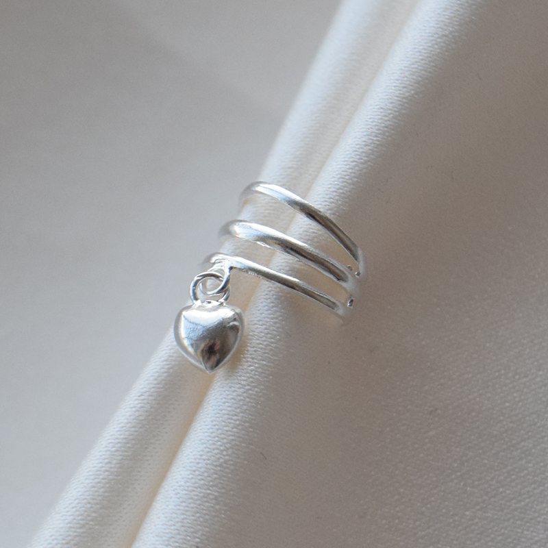 Lumi earcuff er et feminint og elegant øresmykke i sterling sølv med et lagdelt design bestående av tre myke ringer. Under earcuffen henger et lite hjerteformet anheng som tilfører bevegelse og et romantisk, lett uttrykk.