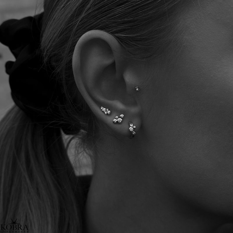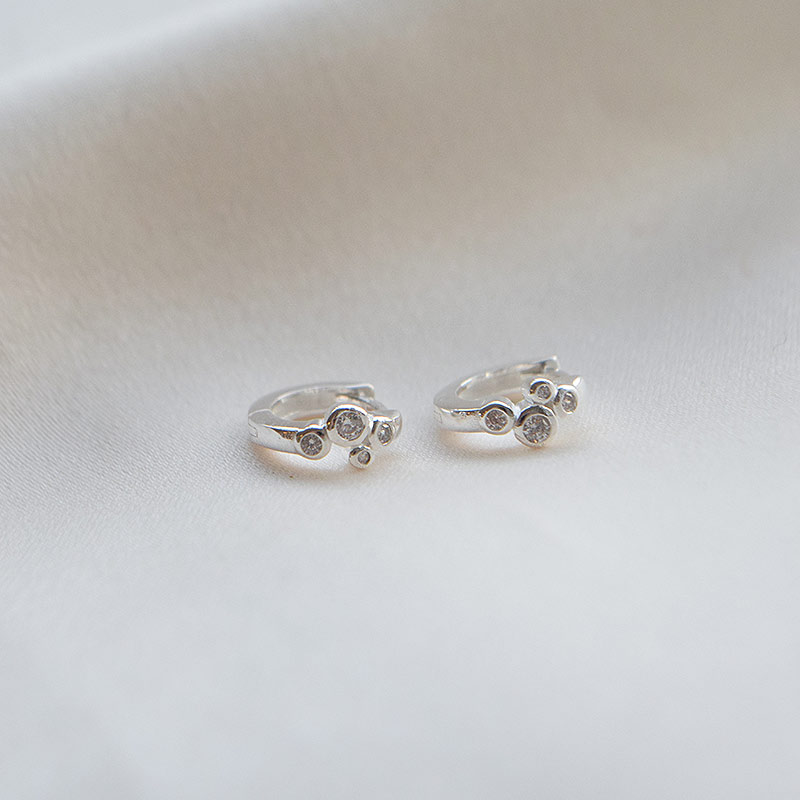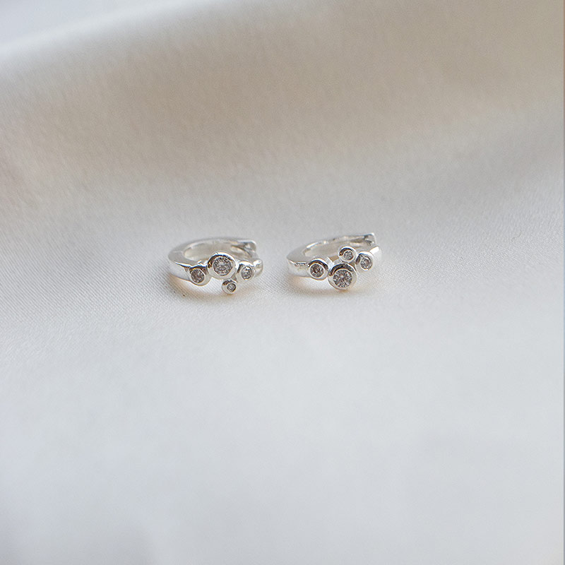 De fineste små hoops i sølv ed hvite steiner. Perfekte på øret og enkle å style hvis du har flere hull!