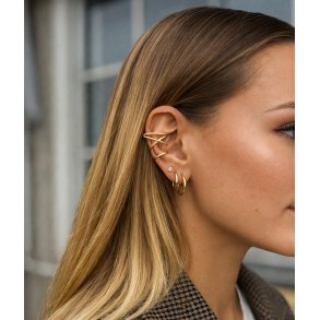 Våre earcuffs i 18k forgylt sterlingsølv forener klassisk eleganse med moderne styling. Den varme gyldne tonen gir et eksklusivt look som passer vakkert til både nøytrale antrekk og lag-på-lag styling med andre gullsmykker. Forgyllingen er skapt for daglig bruk med fokus på holdbarhet og komfort, slik at du får et smykke som kan bæres igjen og igjen. Enten du velger en enkel earcuff eller et mer feminint design med struktur, får du et stilrent smykke med tidløs karakter.