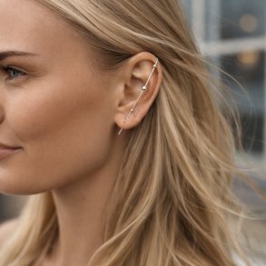 Earcuffs gir uendelige muligheter for styling. Kombiner en enkel sølv earcuff med små ørestikker for et minimalistisk uttrykk, eller mix forgylte earcuffs med hoops og kjedeøredobber for et mer iøynefallende look. Lag-på-lag styling skaper dybde og personlighet, samtidig som smykket bevarer sin letthet. Den allsidige formen gjør earcuffs ideelle til både casual hverdagsstil og elegant aftenlook, noe som gjør dem til en fast del av den moderne smykkegarderoben.