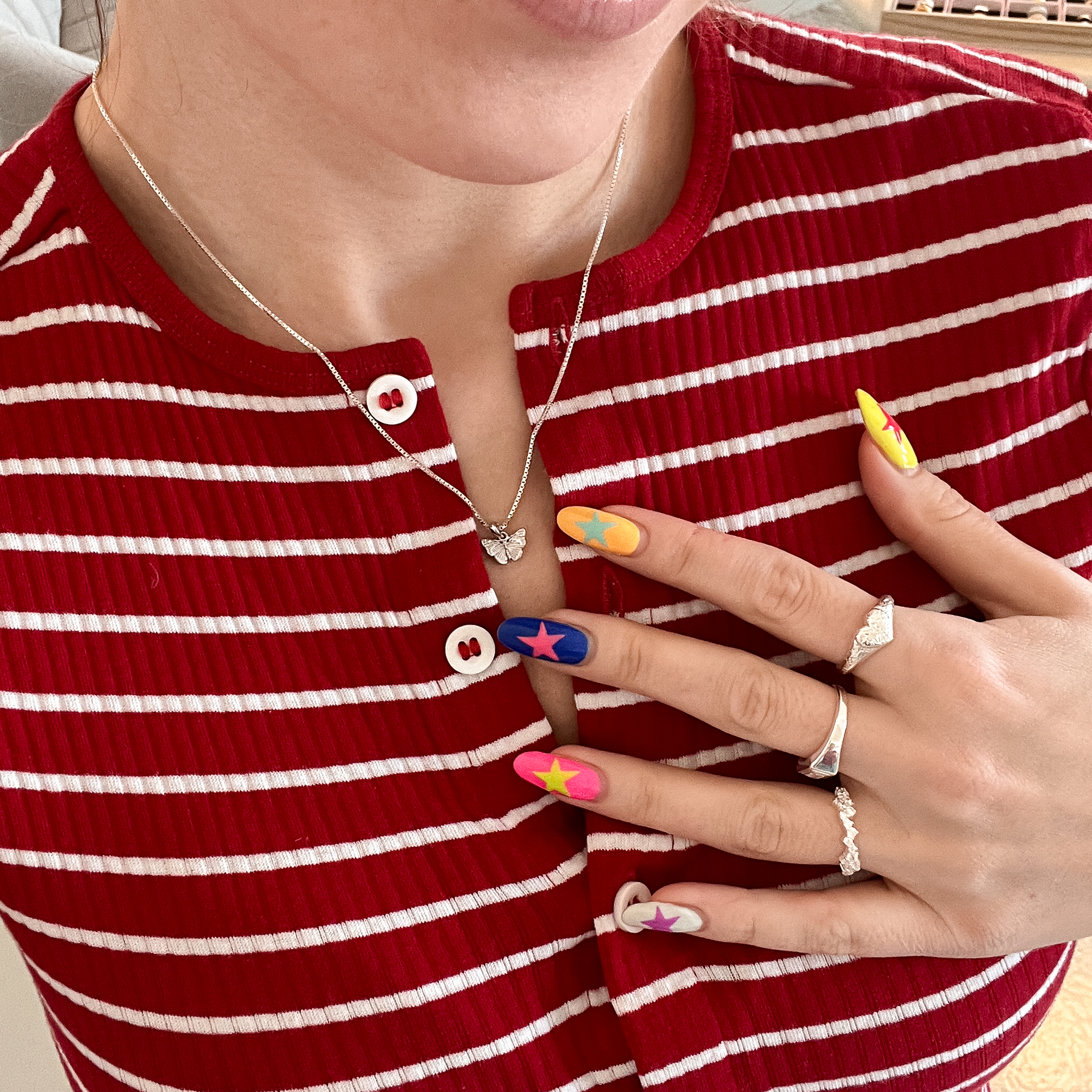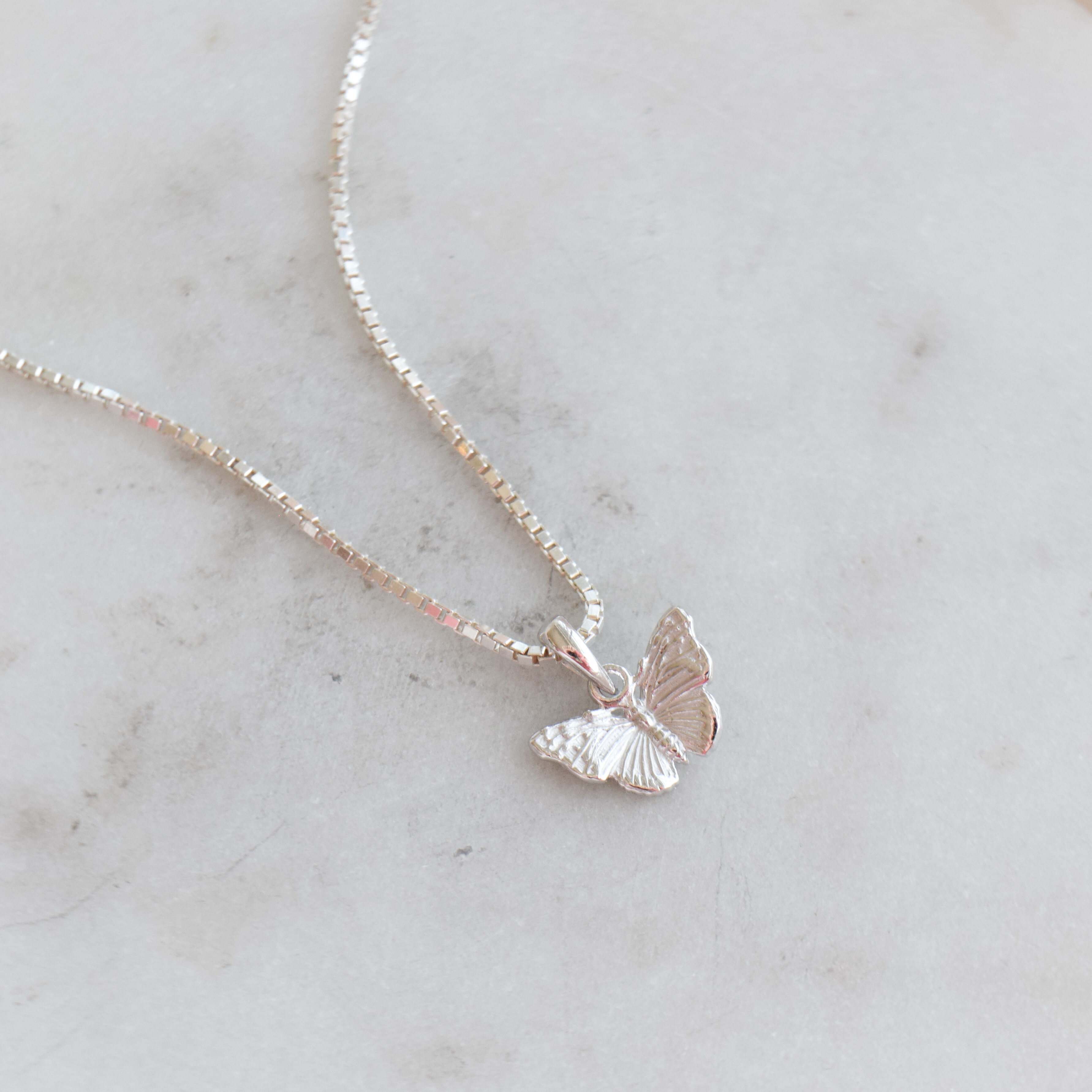 Denne delikate sommerfuglanheng i sterlingsølv er et symbol på transformasjon, frihet og letthet ୨୧