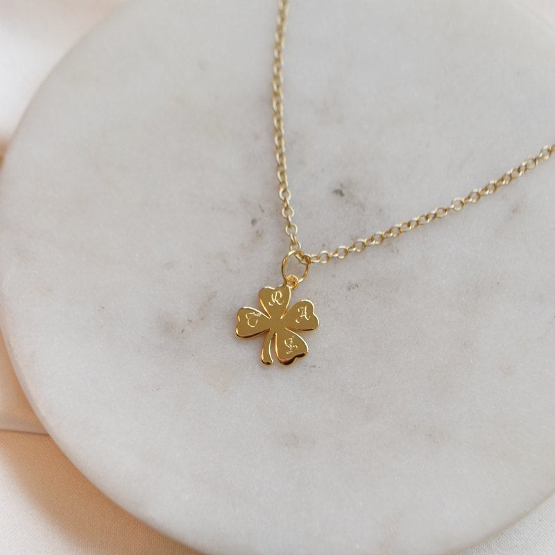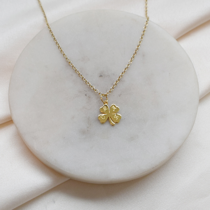 "Felicity" firkløver halskjede i gull med personlig gravering