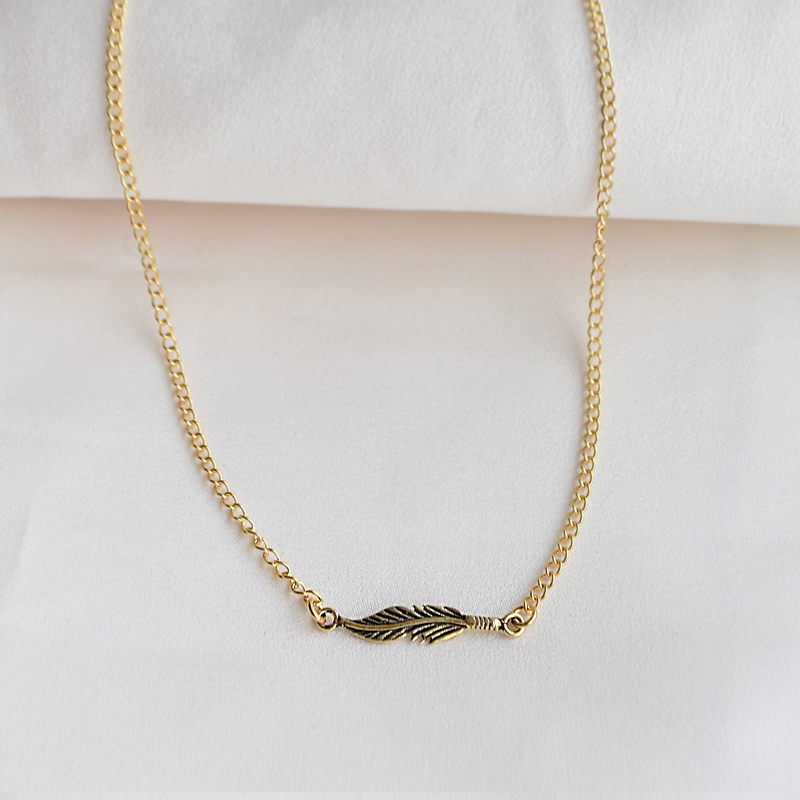 "Merle" halskjede/choker med fjær i 18k forgylt sterlingsølv.