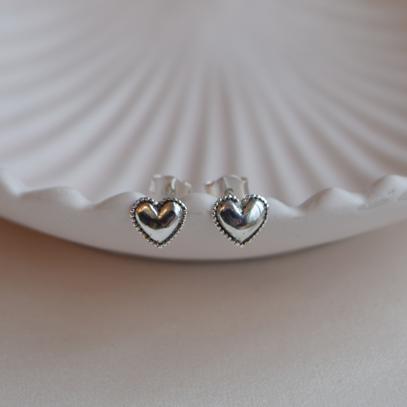 Ti Amo ørestikker er fine og tidløse hjerteformede ørestikker i sterling sølv. Det myke, polerte hjertet kombinert med den diskrete kanten gir et feminint uttrykk med et snev av romantikk – perfekt både til hverdag og spesielle øyeblikk.