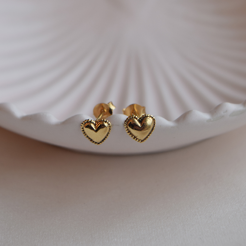 Ti Amo ørestikker er elegante, hjerteformede ørestikker i 18k gullbelagt sterling sølv. Det myke, polerte hjertet kombinert med den fine kanten gir et romantisk og tidløst uttrykk som føles både klassisk og moderne.